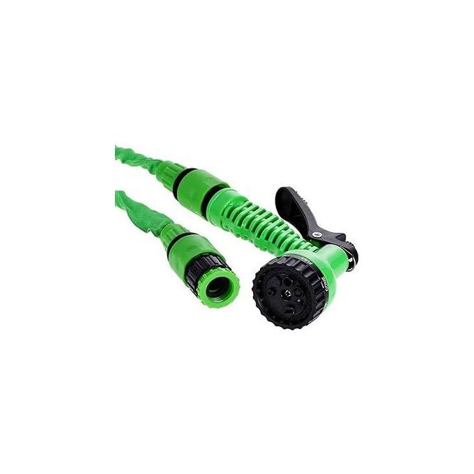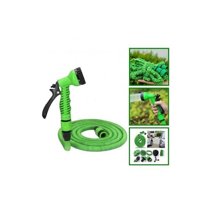 Tuyau d'arrosage d'une longueur de 7,5M qui peut être prolongé jusqu'à 22,5M Après avoir connecté le tuyau d'eau à l'eau, le tuyau de pression d'eau se dilatera rapidement jusqu'à trois fois sa longueur et reviendra à sa longueur d'origine quelques minutes après la vidange. Assurez-vous simplement que la pression de l'eau est suffisante pour étirer le tuyau. Compatible avec les robinets de jardin.