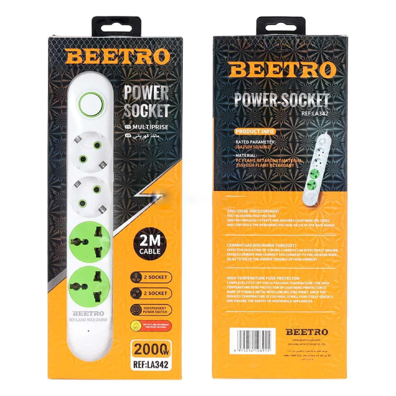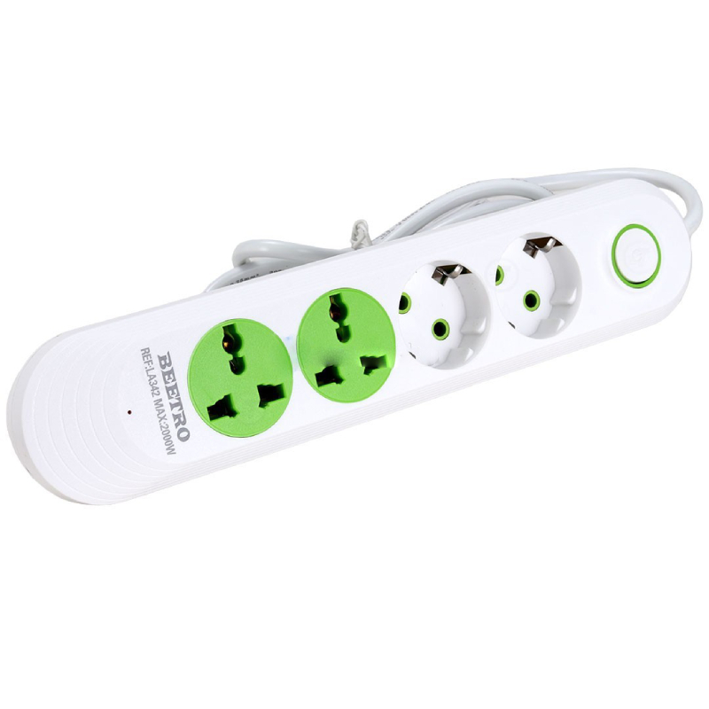 Multiprise avec interrupteur 3 prises 2 adaptateurs BEETRO La multiprise 2000W de BEETRO est un accessoire électrique pratique et fonctionnel pour gérer vos besoins de branchement multiple. Dotée de 2 prises de terre, 2 prises spéciale, la multiprise vous permet de brancher plusieurs appareils en même temps, simplifiant ainsi la gestion de vos appareils électriques et évitant les enchevêtrements de câbles. La multiprise est équipée de protections contre les surtensions et les fluctuations de tension, contribuant ainsi à prévenir les dommages électriques potentiels à vos appareils. Cette multiprise comporte un interrupteur d’alimentation, vous permettant de couper l’alimentation de la multiprise lorsque les appareils ne sont pas utilisés, contribuant ainsi à économiser de l’énergie.. Son design compact et fonctionnel la rend facile à intégrer dans différents espaces de votre maison, bureau ou tout autre endroit nécessitant des prises de courant supplémentaires.